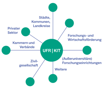 Ein großes Ziel braucht starke Netzwerke, damit die vom Klimawandel besonders betroffenen und gleichzeitig innovationsstarken Stadt-Regionen am Oberrhein zu Laboren von Systeminnovationen werden können. Im Kern des Netzwerks stehen die antragstellenden Universitäten UFR (mit dem Universitätsklinikum) und KIT.