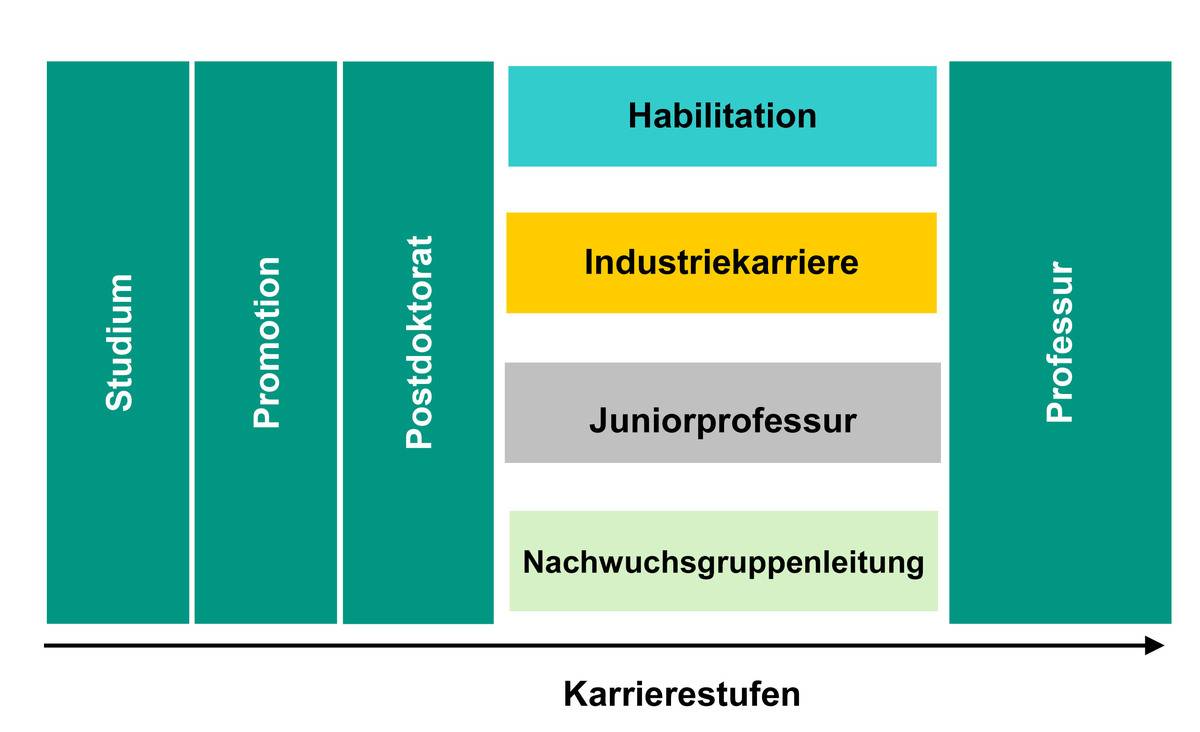 Am KIT führen neben der Habilitation weitere Wege zur Professur: die Leitung einer Nachwuchsgruppe, die Juniorprofessur und eine Tätigkeit in der Industrie.