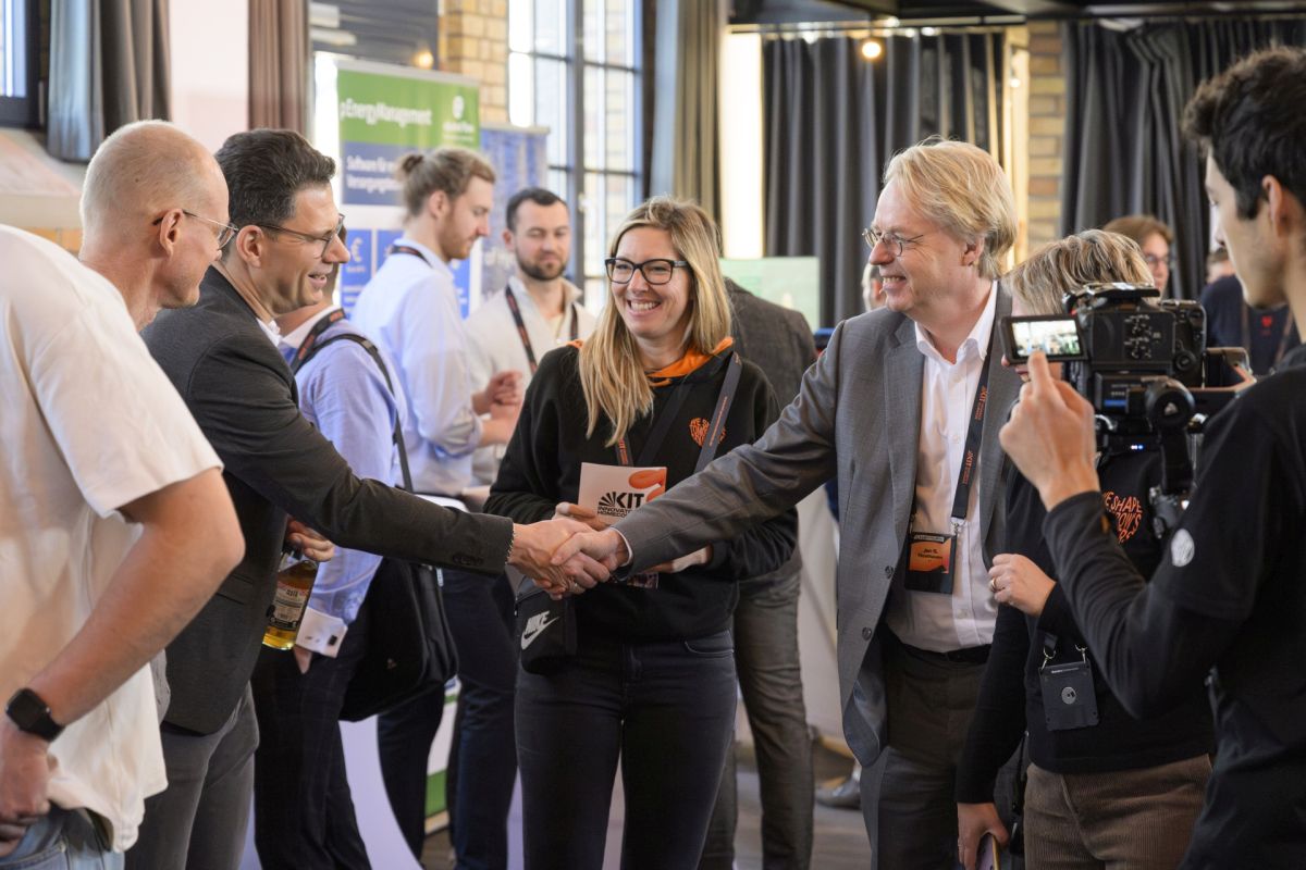 Jan S. Hesthaven, der Präsident des KIT, eröffnete die Veranstaltung und nahm sich Zeit für Vorträge, einen Ausstellungsrundgang und persönliche Gespräche. Auch Thomas Neumann, Leiter der KIT-Gründerschmiede, begrüßte die Gäste. Neben spannenden Keynotes von Gründerinnen und Gründern war eine Paneldiskussion zur Zukunft von Energie und Mobilität ein besonderes Highlight. Dabei diskutierten Andreas Stryz (FINN), Simona Rossetti (Siemens Energy), Crispin Leick (EnBW New Ventures) mit Dr. Sandra Kauffmann-Weiß aus dem KIT (InnovationsCampus Mobilität der Zukunft) über Innovationen und technologische Entwicklungen in diesen Schlüsselbranchen. Begleitend dazu präsentierten sich 22 Start-ups aus dem KIT in einer Ausstellung und zeigten ihre innovativen Lösungen aus verschiedenen Technologiefeldern.