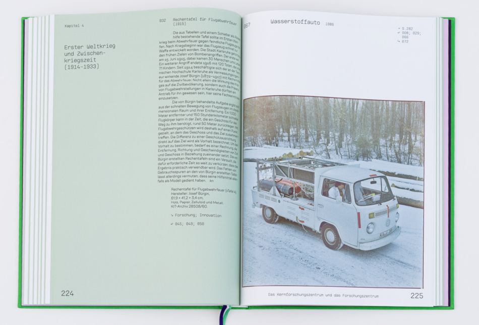 Der Hardcover-Band umfasst rund 350 Seiten und stellt alle 100 Exponate der Schau mit einem etwa halbseitigen Text vor. Die Objekte stammen aus dem Archiv des KIT sowie dem internen Call for Objects, der Mitarbeitende dazu eingeladen hat, ihr eigenes Stück KIT-Geschichte für die Ausstellung zur Verfügung zu stellen. Sie geben Einblicke in Forschung, Lehre, Innovation, Alltag und kulturelles Leben am KIT und seinen Vorgängereinrichtungen.