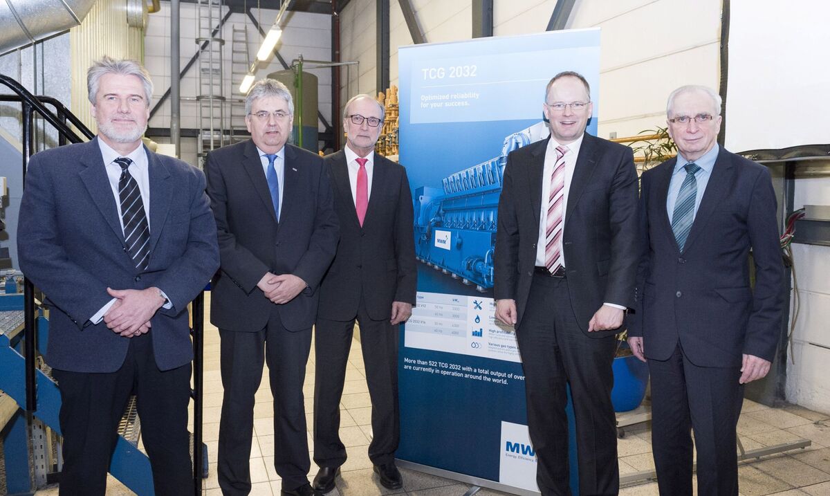 V.l.n.r.: Frank Anders, Engineering Manager und Leiter Motorenentwicklung Caterpillar, Dr. Ulrich Breuer, Reinhard Subbert, Thomas Koch (alle KIT), und Heinrich Baas, Leiter Vorentwicklung Systemtechnologien bei Caterpillar (Foto: Sandra Göttisheim, KIT)