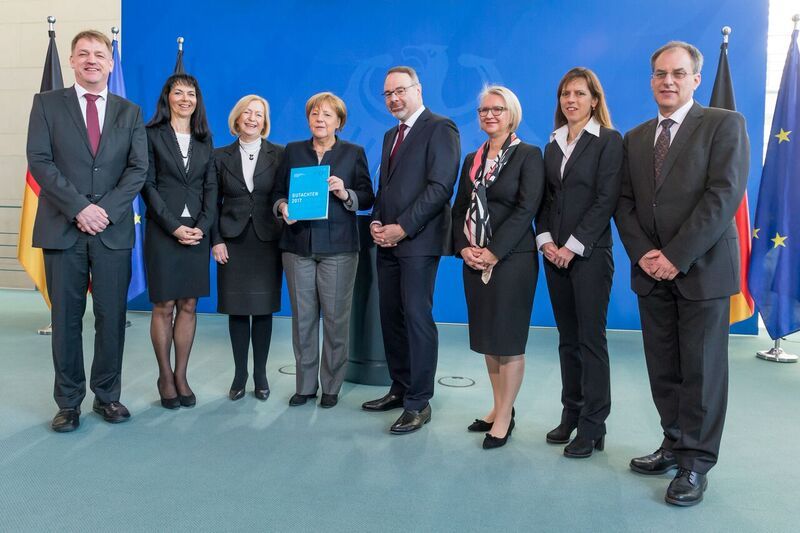 „Besonders die Zahl der Unternehmensgründungen, insbesondere in der wissensbasierten Wirtschaft ist vergleichsweise gering“, sagt Professorin Ingrid Ott, Lehrstuhlinhaberin für Wirtschaftspolitik am Karlsruher Institut für Technologie (KIT) und Mitglied der EFI (Foto: 2. v.r.).
