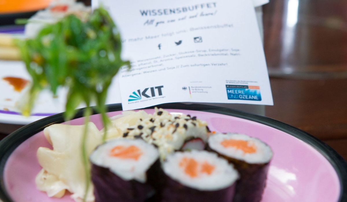 Wissenschaft appetitlich verpackt erlebten Besucherinnen und Besucher eines Karlsruher Restaurants in diesem Jahr beim Running-Sushi-Buffet: Passend zum Menü gab es populärwissenschaftliche Vorträge zu Fragen rund um das Thema Meere und Ozeane. Woher kommt der Fisch auf meinem Teller, wurde er mit nachhaltigen Methoden gefangen, wie sieht die Ernährung der Zukunft aus?
