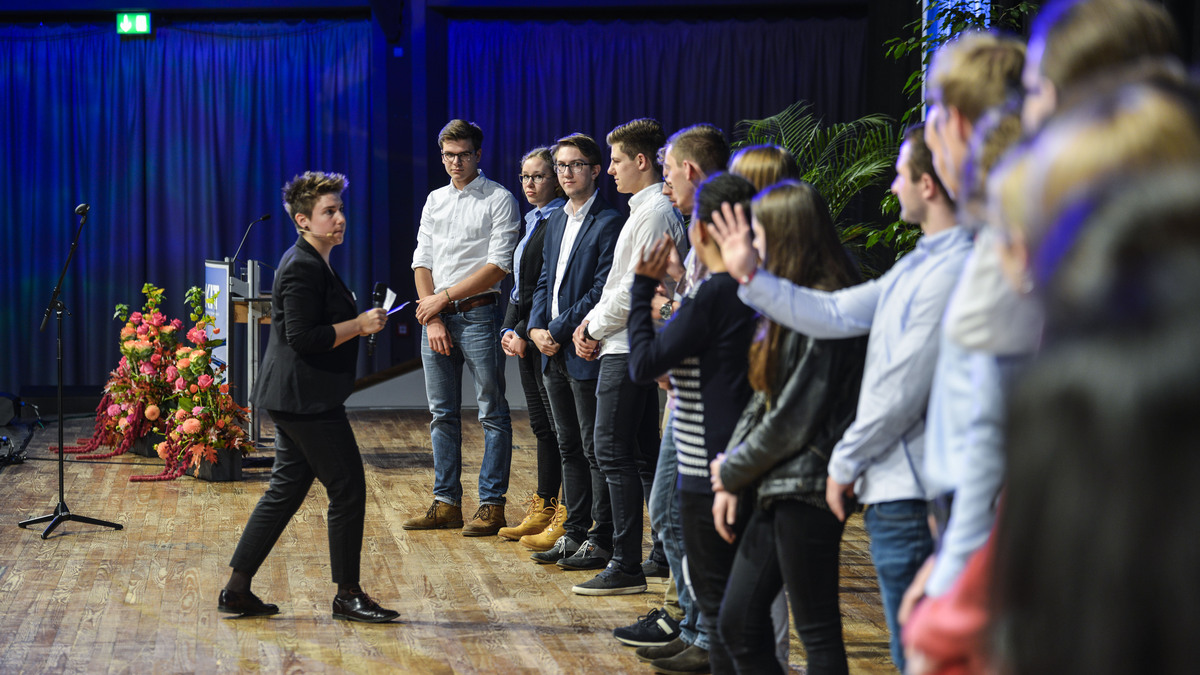Den Start am KIT erleichterten die traditionell von den Fachschaften organisierten Orientierungsphasen, kurz O-Phasen, vor Semesterbeginn. Zum abwechslungsreichen Campusleben – von Kultur über Sport bis Politik und vielem mehr – tragen die mehr als 90 Hochschulgruppen des KIT bei. „Zum erfolgreichen, engagierten Studieren gehört neben der fachlichen und interdisziplinären Ausbildung ganz wesentlich auch der Blick über den eigenen Tellerrand. Dazu bieten wir unseren Studentinnen und Studenten vielfältige Anreize und Möglichkeiten. Dazu zählt nicht zuletzt die aktive Mitarbeit in Fachschaften und Hochschulgruppen“, so der Vizepräsident des KIT für Lehre und akademische Angelegenheiten, Professor Alexander Wanner. Für ihr besonderes Engagement zeichnete er bei der Erstsemesterbegrüßung 61 Studentinnen und Studenten des KIT aus.