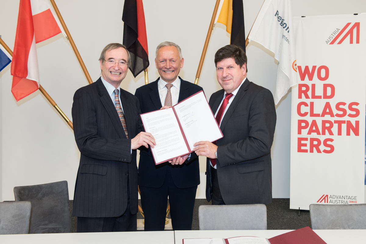 Unterzeichnet wurde das Abkommen von Prof. Thomas Hirth, Vizepräsident für Innovation und Internationales am KIT, und WKÖ-Präsident Christoph Leitl im Rahmen des IHK-Neujahrsempfangs am 8. Januar 2018 in Karlsruhe (Medieninformation der WKÖ).