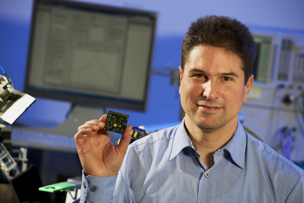 Immer schneller, immer kleiner: Nicht nur in der Industrie 4.0, auch in vielen anderen Anwendungen werden immer kleinere und genauere Sensoren benötigt. Beispielsweise mobile Roboter oder Drohnen benötigen für ihre jeweiligen Aufgaben oder zur Navigation eine Vielzahl von Sensoren. Diese müssen nicht nur extrem klein, sondern auch leicht sein. Maßgeblich beigetragen zur Miniaturisierung solcher Millimeterwellen-Transceiver zum Einsatz in Elektronikbauteilen hat Professor Thomas Zwick, Leiter des Instituts für Hochfrequenztechnik und Elektronik am Karlsruher Institut für Technologie (KIT). So haben die Ergebnisse seiner Arbeitsgruppe wesentlich zum weltweit ersten 120-Gigahertz-Radarsensor in einem acht mal acht Millimeter großen Chip beigetragen.