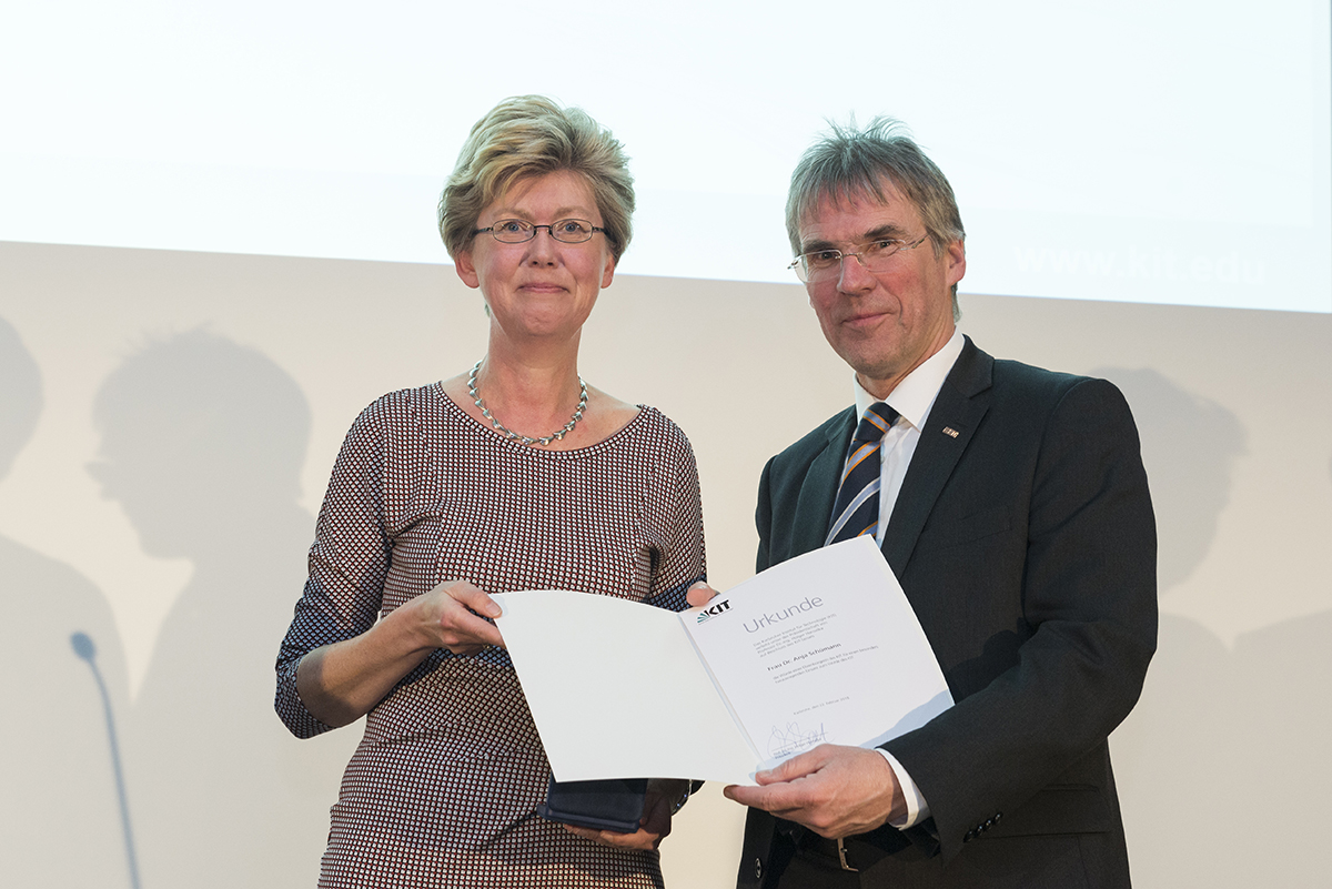 So zeichnete der Präsident des KIT Rainer Blickle mit der Ehrensenatorwürde aus. Blickle ist Gesellschafter der SEW-Eurodrive GmbH & Co. KG und Vorstandsvorsitzender der SEW-Eurodrive Stiftung. 2013 erhielt er bereits die Verdienstmedaille des KIT. Die SEW-Eurodrive Stiftung fördert wissenschaftliche Arbeiten und Erkenntnisse auf dem Gebiet der Technik und der Wirtschaft, wie etwa Forschungsprojekte oder Gastprofessuren und vergibt jährlich mehrere Deutschlandstipendien. Mit Unterstützung der Stiftung kann das KIT außerdem jetzt die neue Stiftungsprofessur „Elektronische und informationstechnische Grundlagen der funktionalen Sicherheit“ einrichten.