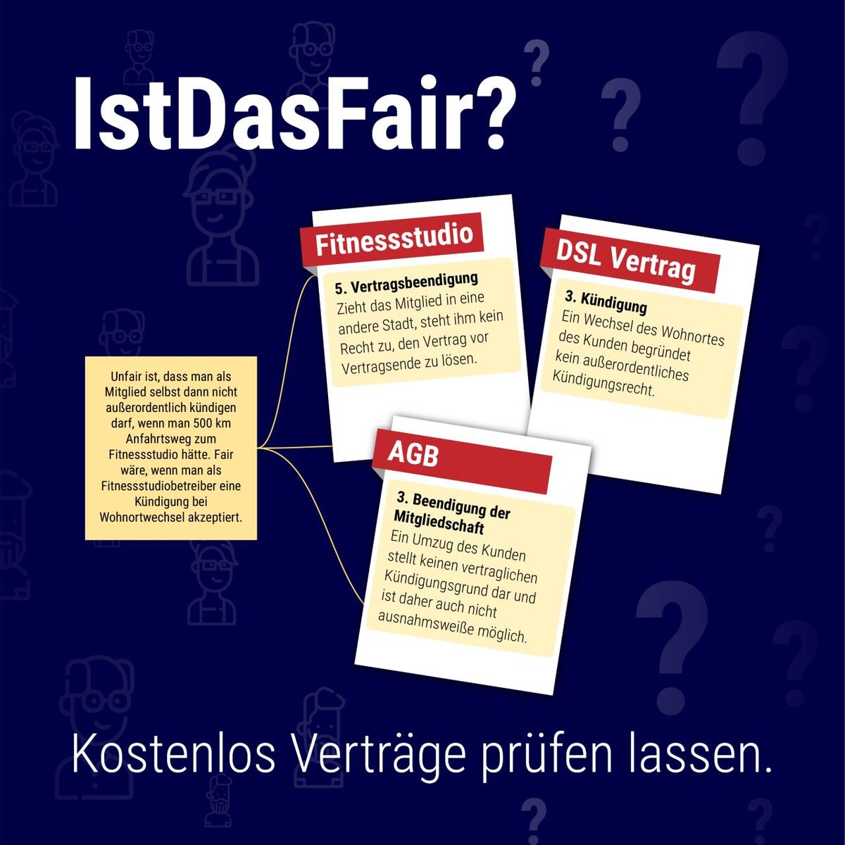 In der Datenbank des Portals sind unzählige unfaire, aber auch faire Textbausteine gespeichert, die Expertinnen und Experten bereitstellen. Durch einen einfachen Klick gleicht eine Künstliche Intelligenz (KI) die Textbausteine in Verträgen auf Ungereimtheiten und versteckte Fallen mit dem Fachwissen ab.