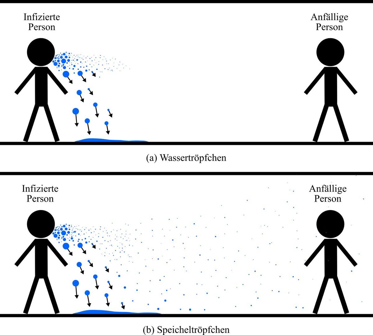 „Speicheltröpfchen setzen sich aus Wasser und festen Bestandteilen zusammen. An der Luft verdunstet der Wasseranteil recht schnell, aber die festen Bestandteile können quasi unbegrenzte Zeit bestehen bleiben“, sagt Rainer Koch vom Institut für Thermische Strömungsmaschinen des KIT. „Diese Resttropfen haben einen Durchmesser von 20 Prozent des ursprünglichen Tropfens und können so noch als Wirt für Viren dienen.“ Deshalb bestimme sich die Infektiosität aus der Lebensdauer der Viren auf dem Resttropfen. Dies erkläre, warum in der kalten Jahreszeit das Infektionsgeschehen zunehme, wenn Menschen sich verstärkt in Innenräumen aufhielten und nicht ausreichend gelüftet werde.