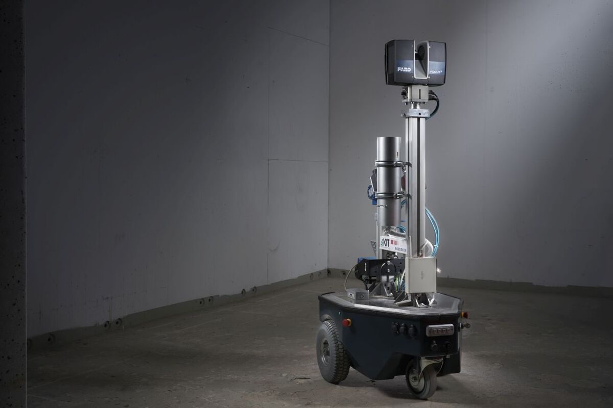 Atomar verseuchte oder verunreinigte Gebäude, Objekte oder Flächen zu reinigen, ist für Menschen gefährlich. Deshalb sollen Roboter diese Aufgabe übernehmen – etwa bei der Altlastensanierung oder beim Rückbau kerntechnischer Anlagen. Forschende des Karlsruher Instituts für Technologie (KIT) haben jetzt im Rahmen des Kompetenzzentrums „Robotersysteme für die Dekontamination in menschenfeindlichen Umgebungen“ (ROBDEKON) Systeme dafür entwickelt.