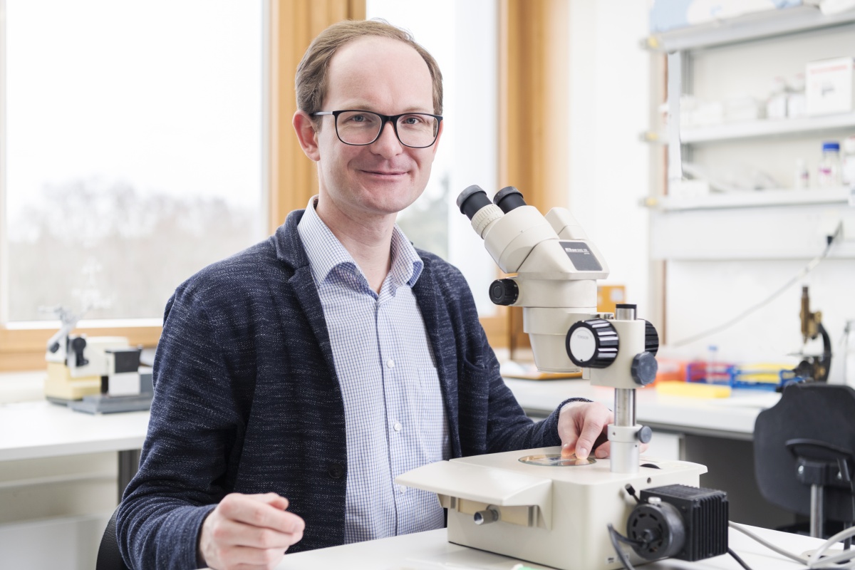 Professor Lennart Hilbert untersucht mit seiner Forschungsgruppe „Computational Architectures in the Cell Nucleus“ am Institut für Biologische und Chemische Systeme des KIT, wie die Prozesse im Zellkern genau funktionieren. Das Ziel der Forschenden ist es, eine DNA-basierte Hardware für die Zukunft zu entwickeln. „Wir wissen, dass jede unserer Zellen ein Informationssystem ist, das die DNA als zentralen Datenspeicher benutzt. Wir wollen diese bestehenden Systeme, die von der Evolution gestaltet wurden, verstehen, von der Natur lernen und ihre Funktionsweise kopieren. Mit diesem Wissen könnten wir dieselben Funktionen in einfacheren Systemen nachbauen“, erläutert Hilbert.