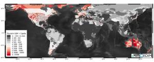 Global Map of tourism-derived GDP per capita at a sub-country level. (Photo: Andreas Schaefer / KIT)