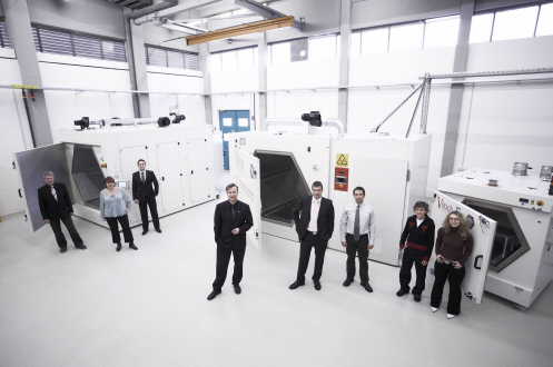 Die Arbeitsgruppe „Industrielle Mikrowellentechnik“ im neuen Mikrowellen-Versuchszentrum im Forschungszentrum Karlsruhe (Foto: Forschungszentrum Karlsruhe)