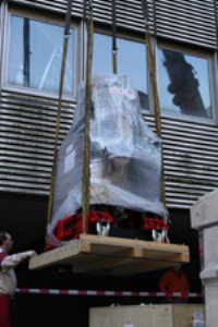 Wertvoller Schwertransport: Einzug des Transmissions-Elektronenmikroskops ins CFN-Gebäude des KIT