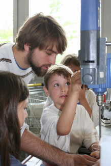 Immer dienstags und donnerstags von 10 bis 10.45 Uhr gehen Wissenschaftlerinnen und Wissenschaftler der Universität und des Forschungszentrums mit den Kindern auf Entdeckungsreise: In Vorlesungen mit Experimenten, Filmen und Schätzfragen bieten sie Natur und Technik für alle Sinne.