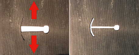 Das Verformungsverhalten einer Moosgummiplatte mit Innenriss demonstriert die Wirkung des „Aikido-Risses“.