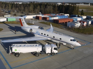 HALO beim Betanken vor dem POLSTRACC Erstflug (Foto: Hermann Oelhaf, KIT)
