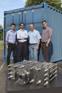 „Damit stellen wir eine völlig neue, modulare Technologie zur Verfügung, die eine echte Alternative zu den kostenintensiven chemischen Großanlagen des konventionellen Gas-to-Liquid-Verfahrens bietet“, erklärt Dr.-Ing. Tim Böltken, Mitglied des vierköpfigen Gründerteams. Die Kompaktanlage eigne sich nicht nur für den Einsatz in großen Chemieunternehmen und der erdölverarbeitenden Industrie, sondern auch dezentral in Kläranlagen oder bei energieerzeugenden Biobauern für die Herstellung von Biogas-to-Liquid-Kraftstoffen, sagt der Chemie-Ingenieur.