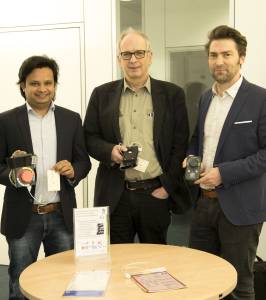 Die geistigen Väter von RescueWave (v.l.n.r.): Dr. Ashok Kumar Chandrasekaran, Professor Wilhelm Stork und Dr. Stephan Heuer. (Foto: FZI Forschungszentrum Informatik am KIT)