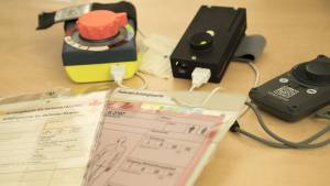 Das elektronische Sensorsystem Rescue-Wave soll Verletztenanhängekarten (Bildvor-dergrund) ersetzen. (Foto: FZI Forschungs-zentrum Informatik am KIT)