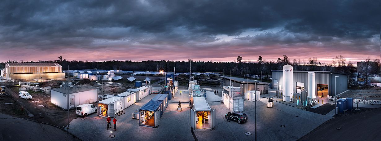 Das Energy Lab 2.0 auf dem Gelände des KIT ist Europas größte Forschungsinfrastruktur für erneuerbare Energie. Hier wird unter anderem die intelligente Vernetzung von umweltfreundlichen Energieerzeugern und Speichermethoden untersucht. (Foto: Markus Breig und Amadeus Bramsiepe, KIT)